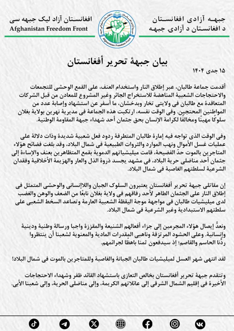 15 جدي 1404 أقدمت جماعة طالبان، عبر إطل…