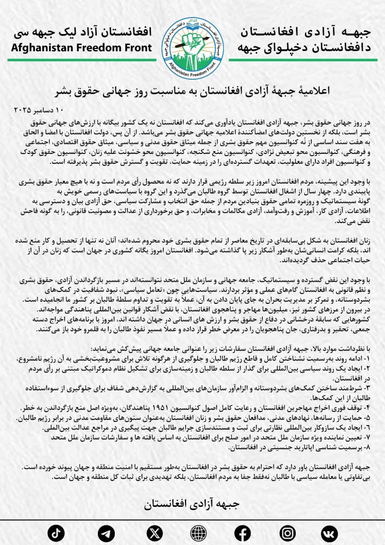 اعلامیۀ جبهۀ آزادی افغانس…
